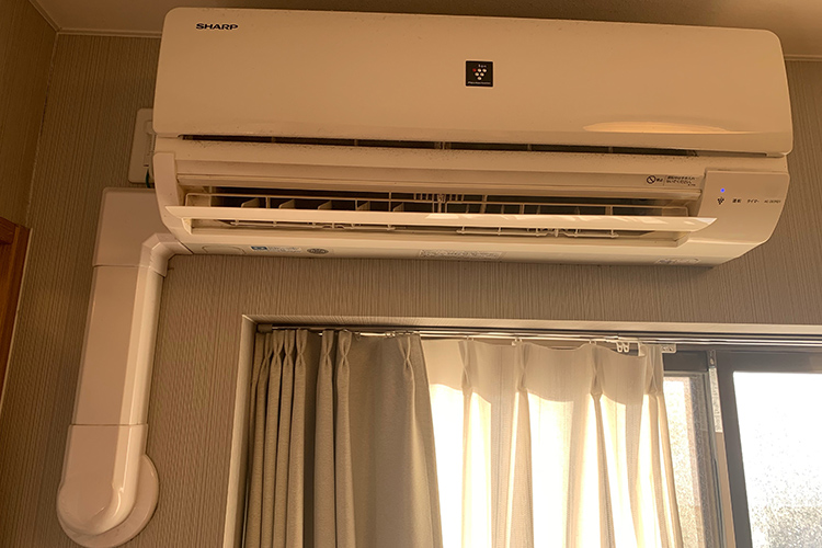 広島市安佐南区のアパートで家庭用エアコンの新規取り付け工事を行いました。