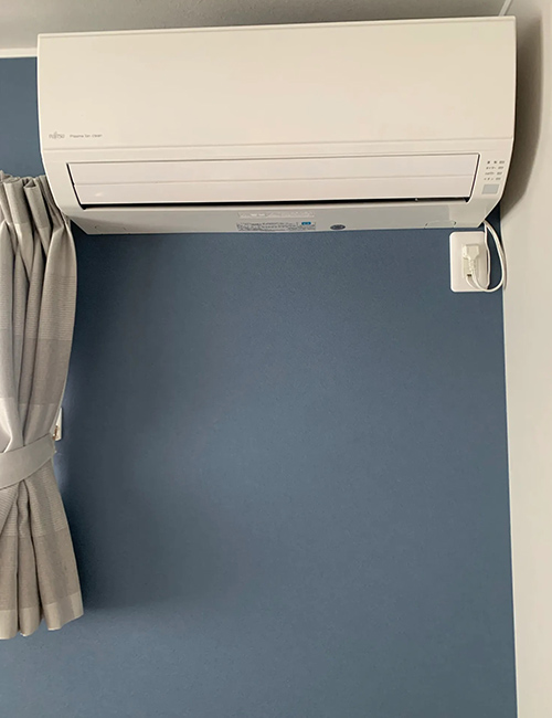 室内機は2階の2部屋に1台ずつ、新しく穴を開けて設置し、室外機は1階の地面に2台設置しています。